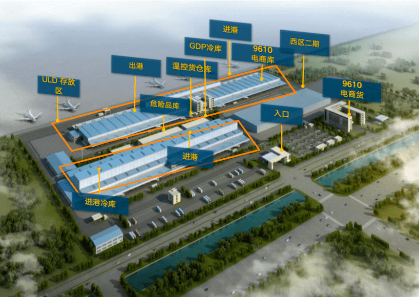 浦東西區(qū)貨站位于浦東機場西貨運區(qū)4號、5號地塊,總占地面積達39.84萬平米,建筑面積20萬平米,設計年貨物處理量100萬噸,是服務于機場第三跑道、以處理國際全貨機、集裝貨物的大型貨運站。